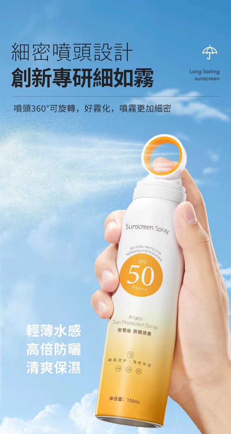 20分鐘前安歌依光圈防曬噴霧,細密噴頭設計 噴頭360°可旋轉自然膚惑,隔離防曬一瓶搞定 - 特大優惠「安歌依光圈防曬噴霧」4入96%用戶的選擇!NT$1198【限時免運】