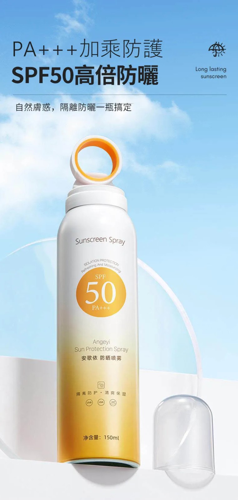半小時前安歌依光圈防曬噴霧,細密噴頭設計 噴頭360°可旋轉自然膚惑,隔離防曬一瓶搞定 - 僅此一天「安歌依光圈防曬噴霧」8入72%用戶的選擇!NT$1598【限時免運】